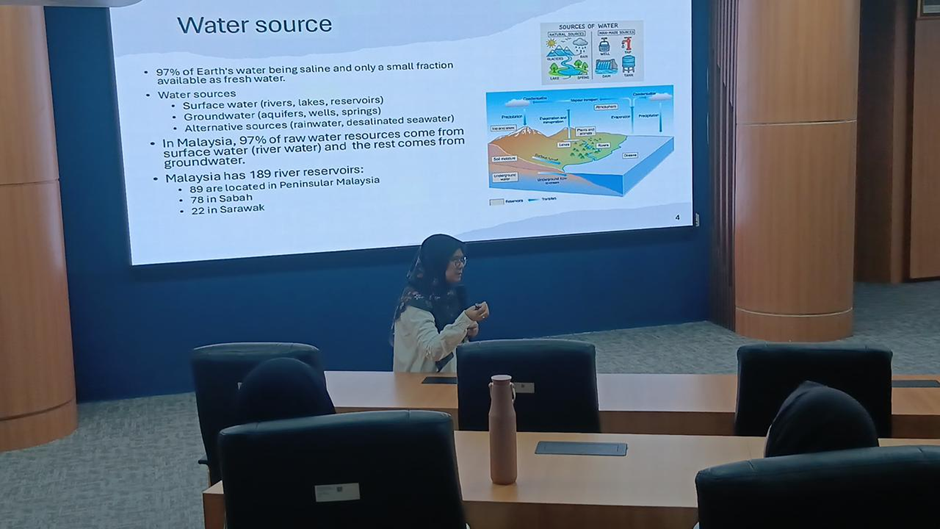 Dalam pemaparannya, Prof. Siti Rozaimah menjelaskan bahwa sekitar 97% sumber air baku di Malaysia berasal dari air permukaan (sungai), sementara sisanya berasal dari air tanah. Sistem pemantauan kualitas air sungai dilakukan secara nasional oleh Department of Environment (DOE) melalui jaringan monitoring yang telah berjalan sejak 1978.